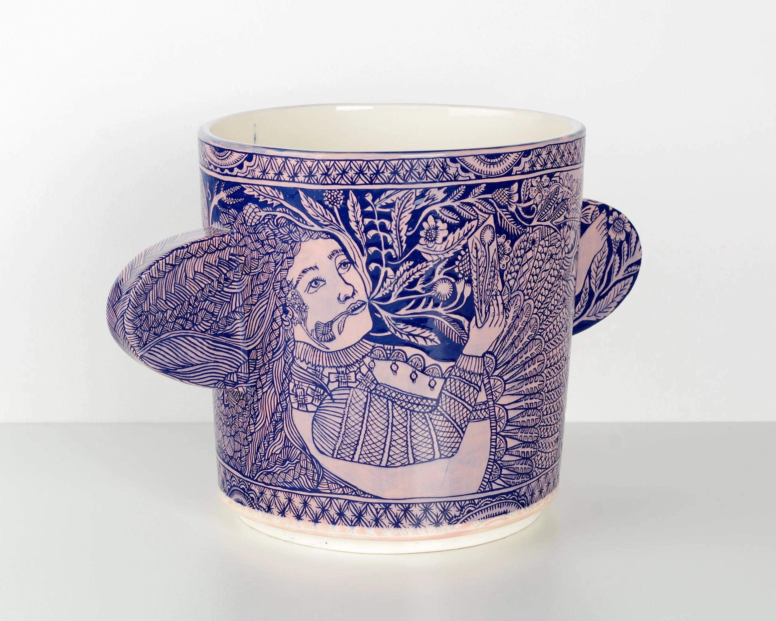 White earthenware with intricate sgraffito